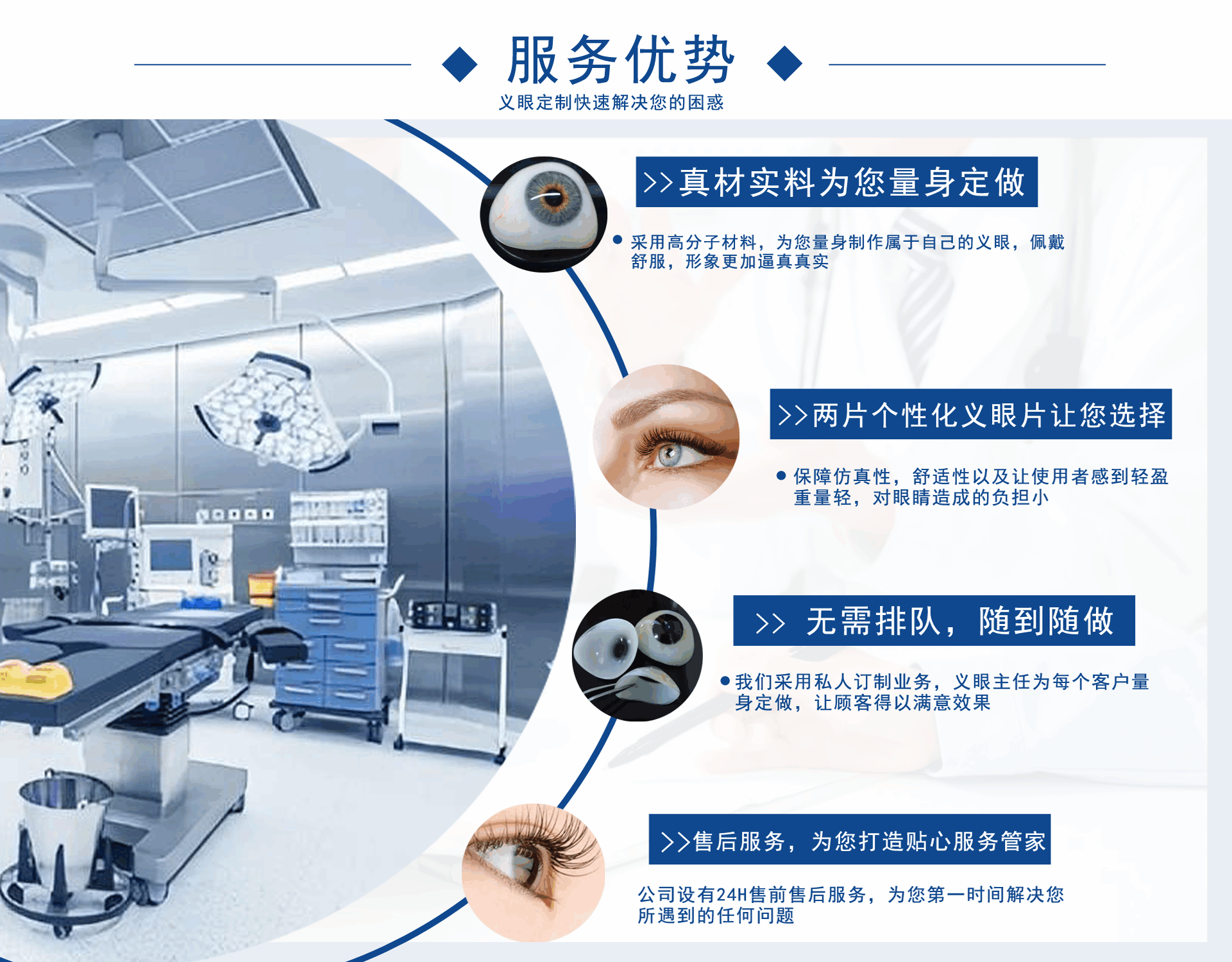 正目醫(yī)療科技有限公司致力于為用戶提供假眼,在哪里可以定制義眼,義眼哪家好,假眼價(jià)格,義眼價(jià)格,義眼費(fèi)用,義眼公司,是集義眼定制、保養(yǎng)、咨詢?yōu)橐惑w的綜合性義眼定制企業(yè)?! —?dú)創(chuàng)的義眼工藝結(jié)構(gòu),根據(jù)仿生物學(xué)原理,采用進(jìn)口醫(yī)用植入材料:高分子材料、無毒素、性能穩(wěn)定、堅(jiān)固耐用)、聚甲基丙乙烯阝-羥乙酯HEMA材料(軟性親水性材料),結(jié)合獨(dú)特的義眼個(gè)性化佩戴技術(shù),按佩戴者健眼的形態(tài)、角膜、虹膜、及瞳孔的大小、色澤、血管紋理和脂肪分布,設(shè)計(jì)制作。擁有超薄、質(zhì)輕、光滑、親水透氧、佩戴舒適和高逼真的特點(diǎn)。為保證佩戴效...
